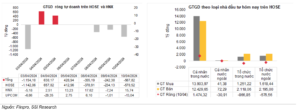 Khối ngoại quay lại bán ròng trên diện rộng với GT 628 tỷ đồng, tập trung tại VHM (-216 tỷ đồng), NVL (-168 tỷ đồng). Chiều mua ròng chỉ ghi nhận phần lớn ở MBB (+407 tỷ đồng) và thấp hơn đáng kể ở nhóm còn lại.