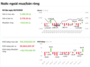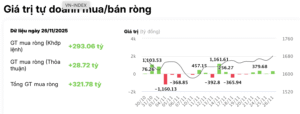 Kết thúc phiên giao dịch ngày 26/11, chỉ số Dow Jones tăng 314.67 điểm (tương đương 0.67%) lên 47,427.12 điểm. Chỉ số S&P 500 cộng 0.69% lên 6,812.61 điểm, còn chỉ số Nasdaq Composite cộng 0.82% lên 23,214.69 điểm.