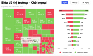 Khối ngoại: Đảo chiều mua ròng trở lại, giá  trị chưa lớn nhưng cũng giamr áp lực bán ròng. Phiên hom qua khối ngoại mua ròng chủ yếu VPB, SSI, VIC,…
