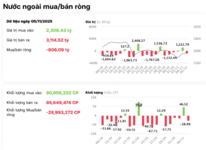 Kết thúc phiên giao dịch ngày 05/11, chỉ số Dow Jones tăng 225.76 điểm (tương đương 0.48%) lên 47,311.00 điểm. Chỉ số S&P 500 cộng 0.37% lên 6,796.29 điểm, còn chỉ số Nasdaq Composite tiến 0.65% lên 23,499.80 điểm.